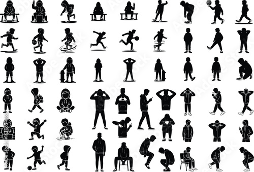 Boy in Hoodie & Sneakers Icon Silhouette Set Urban Teen Style Silhouette – Hoodie and Sneakers Vector Icons