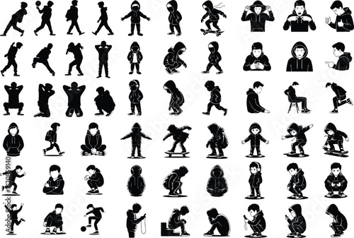 Boy in Hoodie & Sneakers Icon Silhouette Set Urban Teen Style Silhouette – Hoodie and Sneakers Vector Icons