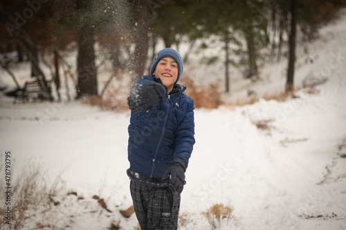 Boy in winter forest