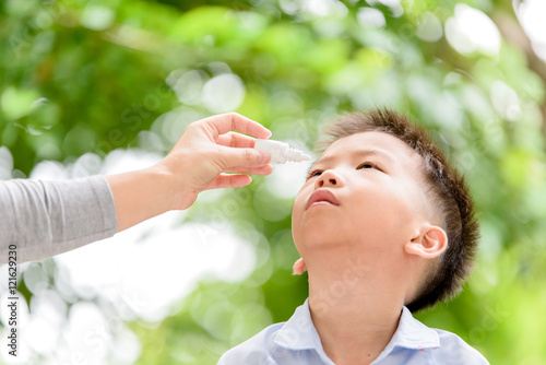 Boy using eyedroper