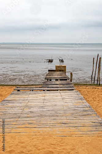 Boyardville. Passage et ponton de bois en front de mer. Charente-Maritime. Nouvelle-Aquitaine
