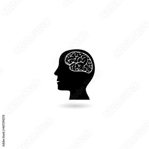 Brain and human head icon with shadow