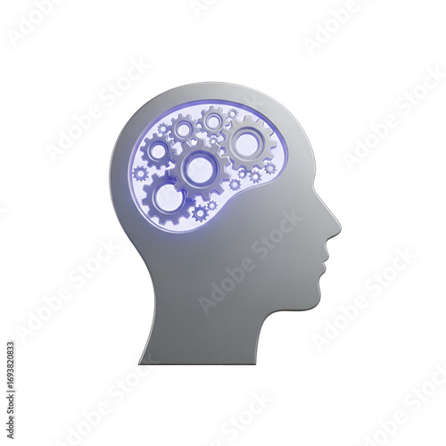 Brain gears turning representing ideas, innovation, and problem-solving concepts with bright light
