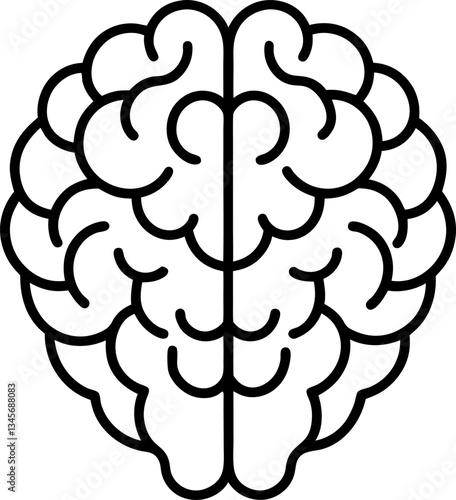 Brain Icon Black and White Outline Design for Education, Medical or Psychology Projects, Isolated on White