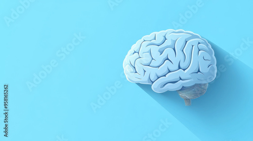 Brain Illustration, Illustration of a human brain silhouette on a light blue background with shadow, representing intelligence and creativity