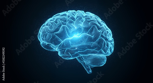 Brain Illustration Glowing in Blue Digital Representation of Human Intellect