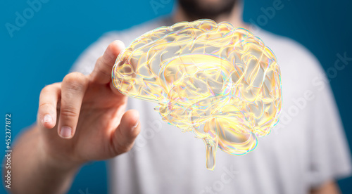 Brain. Low poly abstract digital human brain. Neural network. IQ testing