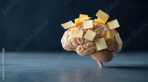 Brain Model with Sticky Notes Representing Ideas and Thoughts