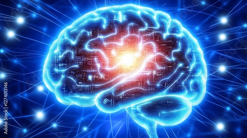 Brain Network - Illuminated brain with circuit board texture, representing neural networks and intelligence