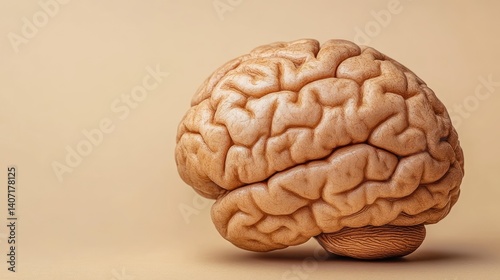 Brain on plain background. Human organ with many convolutions, ridges, and soft folds in light