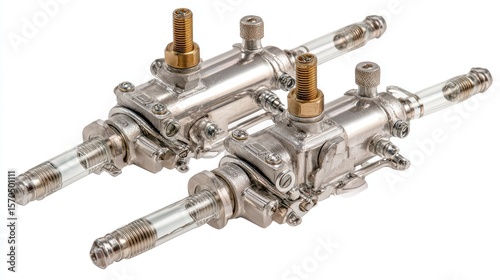 Brake and clutch master cylinders with aluminum finish and clear tubes