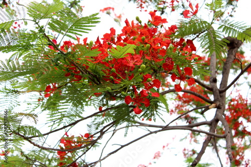 branch of a tree with red flowers