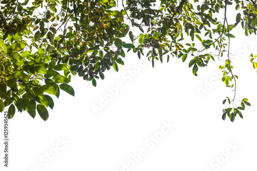 Branch of green tree leaves isolated on white