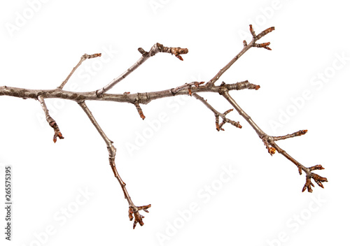Branch of pear fruit tree with bud on isolated white background