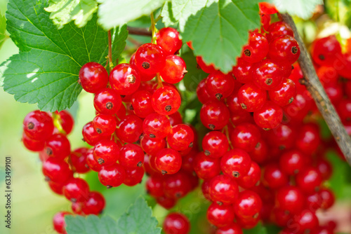 branch of red currants with leaves and berries, on a Sunny summer day