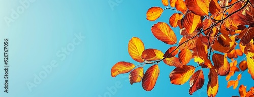 Branches laden with vibrant autumn leaves stand beautifully contrasted against the clear blue sky, highlighting the transition of the seasons.