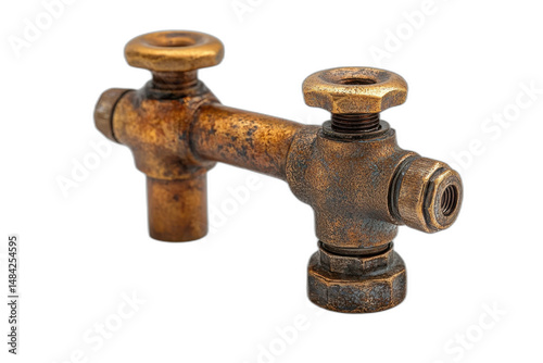 Brass hexagon featuring intricate details and patterns, isolated on transparent background.