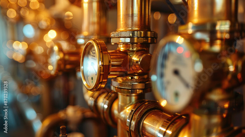 Brass Piping and Pressure Gauges in Industrial Environment