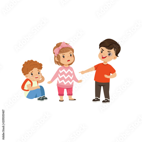 Brave girl trying to stop a boy who bullying little boy vector Illustration on a white background
