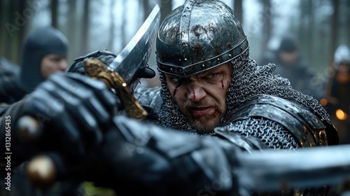 Brave knight era in armor: sword combat, shield defense, chivalric courage, medieval warriors, heroic battles, noble knights, battlefield strategy, armored protection, legendary feats, weapon mastery.