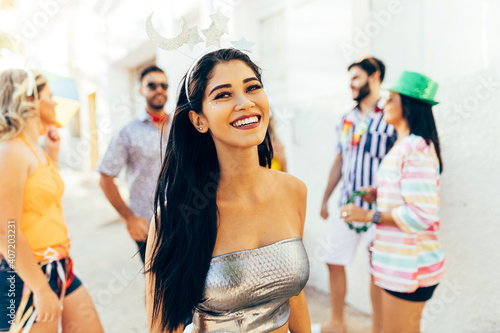Brazilian Carnival. Group of Brazilian people celebrating the carnival party in the city