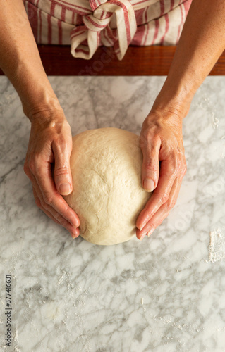 Bread dough and hands