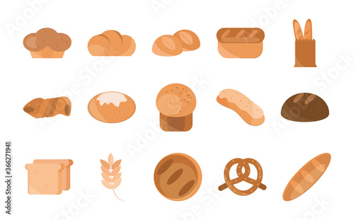 bread menu bakery food product flat style icons set