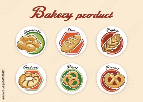 bread products in the circle. Vector Logos.