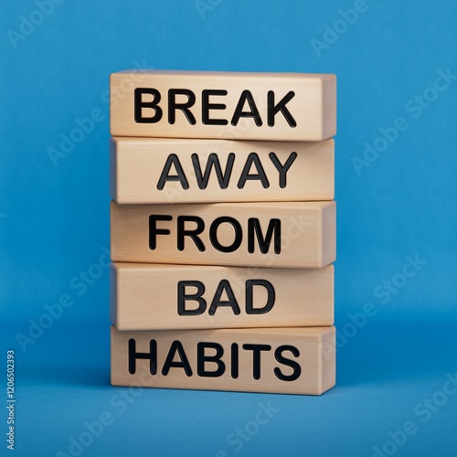 Break away from bad habits symbol. Wooden blocks with words Break away from bad habits.Business and Break away from bad habits concept.Copy space.3D rendering on blue background.