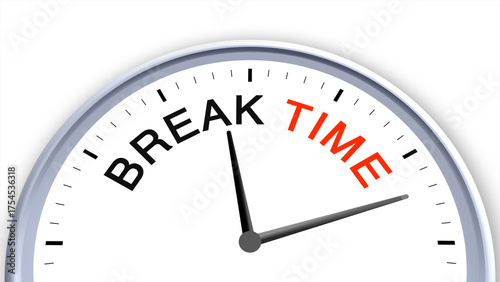 Break time concept illustrated on a clock, symbolizing pause, relaxation, rest, recharge, and daily routine, capturing the essence of taking a mindful moment to refresh and reset