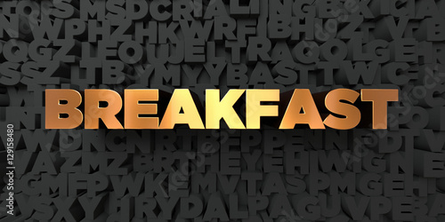 Breakfast - Gold text on black background - 3D rendered royalty free stock picture. This image can be used for an online website banner ad or a print postcard.