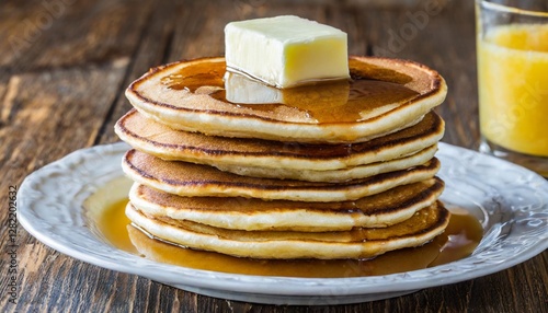 Breakfast Delight: A Stack of Pancakes with Syrup and Butter