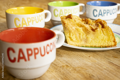 breakfast with cappuccino and apple cake