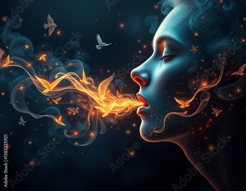 Breath Turns into Light, Birds, and Stars – Surreal Concept Art