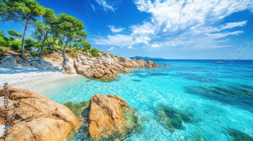 Breathtaking coastal landscape with clear blue water and rocky shore