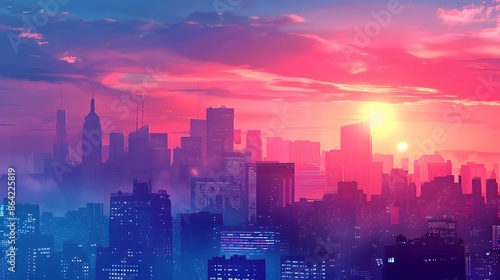 Breathtaking Dawn Cityscape of a Modern Vibrant Metropolis