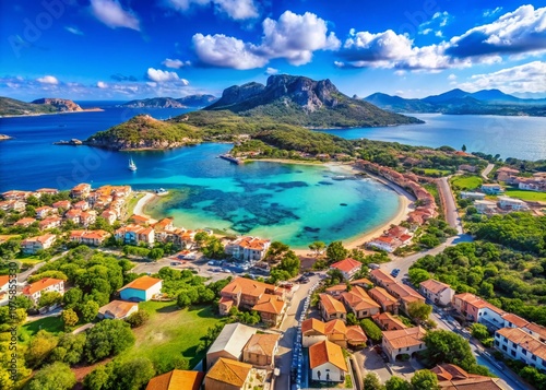 Breathtaking Drone Photography of Porto San Paolo, Sardinia - Panoramic View of the Tyrrhenian Sea and Coastal Resort Town Landscape