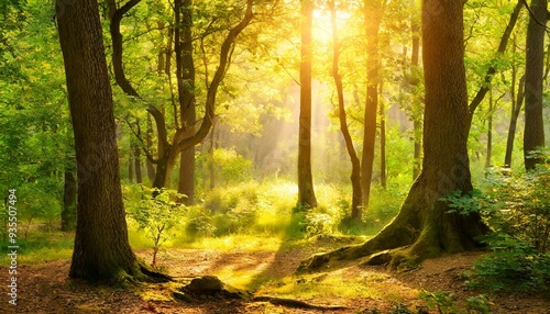 breathtaking image of a sun-drenched forest, showcasing the beauty of nature with its golden rays and vibrant greenery.