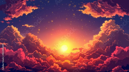 Breathtaking sunset floods the sky with vivid, dramatic hues.