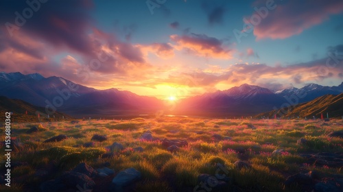 Breathtaking sunset over the high-altitude desert plateau in Tibet reflecting serenity and natural beauty