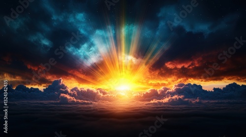 Breathtaking sunset scene featuring clouds and a bright sun casting a warm glow over the horizon for scenic beauty
