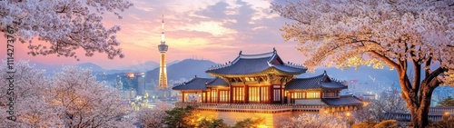 Breathtaking Twilight View of Seoul Tower with City Lights and Vibrant Sky Reflections for Stunning Night Photography