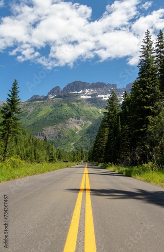Breathtaking view of the Glacier national park under a bright cloudy sky