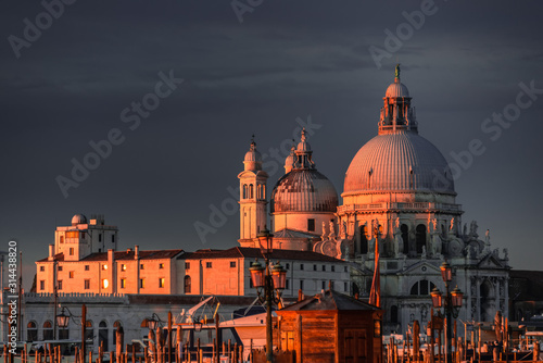 Breathtaking view on the Basilica Di Santa Maria della Salute in Venice in winter Morning light