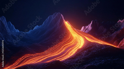 breathtaking volcanic eruption with molten lava flowing down rugged mountains illuminating the dark landscape with intense red light