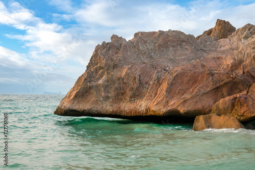 Breezy Morning Gadani Beach with rocks and mountain Balochistan Pakistan