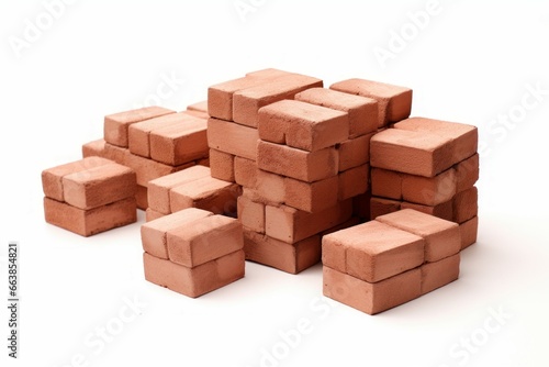 Bricks stack material isolated on white background. Dirty texture solid industry material stone. Generate Ai