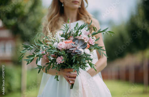 bridal bouquet in hands of the bride