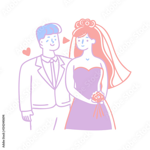 Bride and groom icon expressing love at wedding ceremony, celebration concept