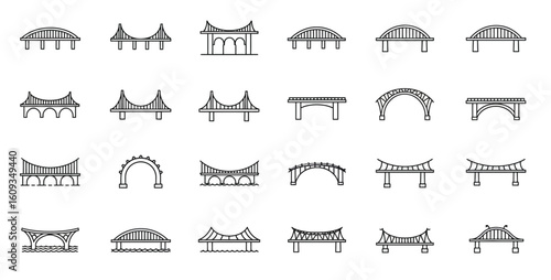 Bridge Icon Set – Minimal Vector Silhouettes of Modern and Classic Bridge Types
